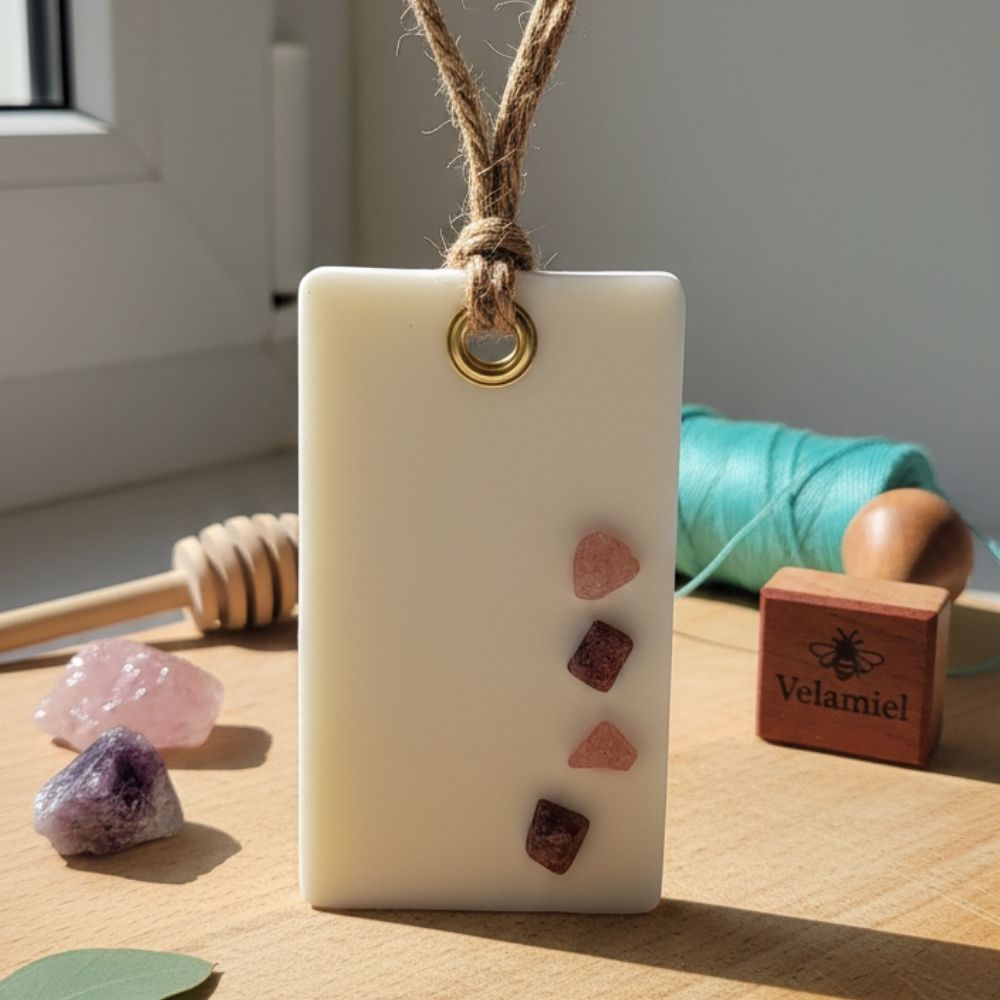 En VelaMiel transformamos los detalles cotidianos en experiencias sensoriales. Nuestros sachets aromáticos son piezas sólidas de cera de soja, moldeadas a mano y decoradas con piedras, lo que convierte a cada uno en una pieza única, robusta y elegante.